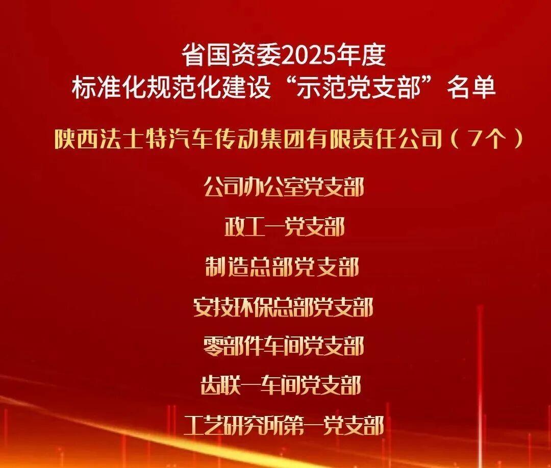 點(diǎn)擊量:1760近日,陜西省國資委黨委通報(bào)2025年度標(biāo)準(zhǔn)化規(guī)范化建設(shè)示范黨支部名單,法士特集團(tuán)公司辦公室、政工一、制造總部等7個(gè)基層黨支部榜上有名,榮獲省國資委“示范黨支部”稱號。這既是對法士特集團(tuán)黨委深耕黨建品牌建設(shè)、推進(jìn)基層黨組織標(biāo)準(zhǔn)化規(guī)范化建設(shè)成果的高度肯定,更彰顯了企業(yè)以制度落實(shí)強(qiáng)化組織效能、推進(jìn)黨建與業(yè)務(wù)深度...