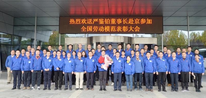法士特干部職工歡送“全國(guó)勞模”嚴(yán)鑒鉑赴京受獎(jiǎng)